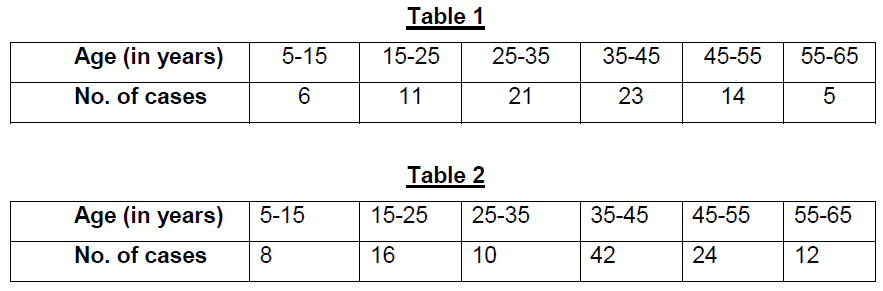 The following tables shows the age distribution of case admitted during a day in two different hospitals
