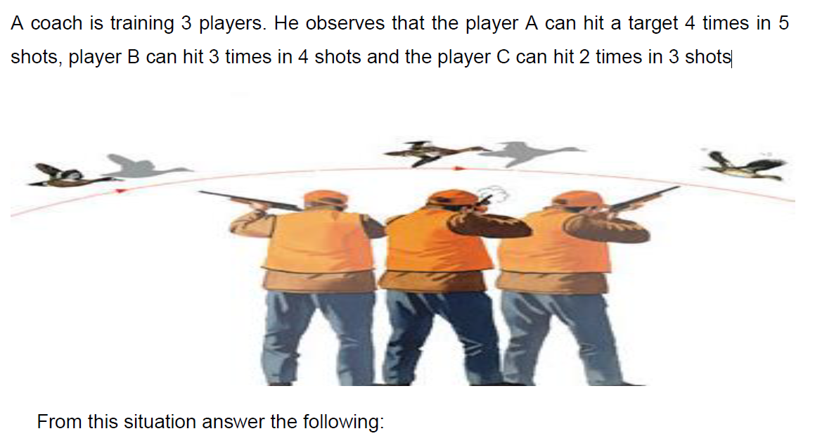 Let the target is hit by A, B: the target is hit by B and, C: the target is hit by A and C. Then, the probability that A, B and, C all will hit, is