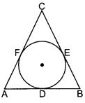 The logo design is as given in the figure and he is working on the fonts and different colours according to the theme. In given figure, a circle with centre O is inscribed in a ΔABC, such that it touches the sides AB, BC and CA at points D, E and F respectively.