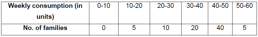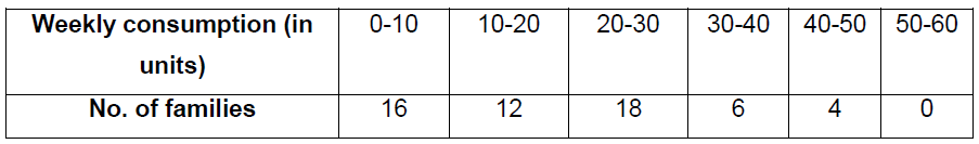 A survey is conducted for 56 families of a Colony A. The following tables gives the weekly consumption of electricity of these families.