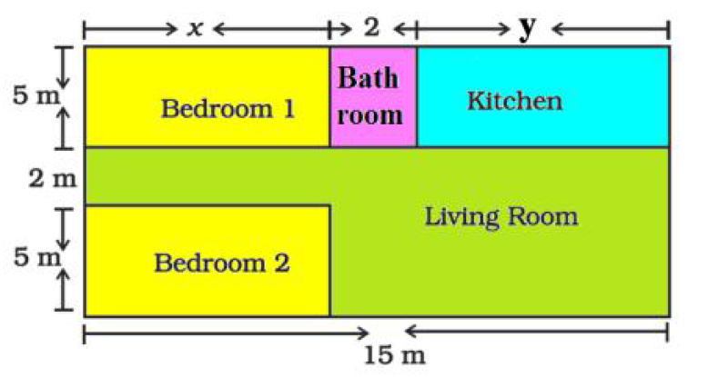 Amit is planning to buy a house and the layout is given below. The design and the measurement has been made such that areas of two bedrooms and kitchen together is 95 sq.m.