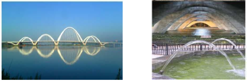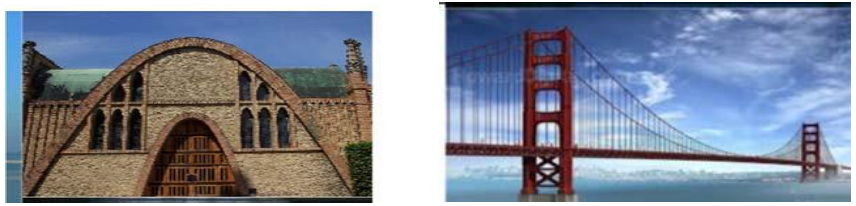 The below picture are few natural examples of parabolic shape which is represented by a quadratic polynomial. A parabolic arch is an arch in the shape of a parabola. In structures, their curve represents an efficient method of load, and so can be found in bridges and in architecture in a variety of forms.