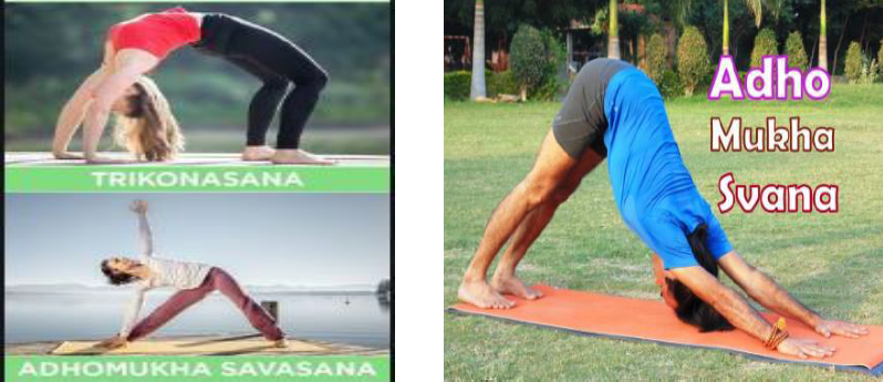 An asana is a body posture, originally and still a general term for a sitting meditation pose, and later extended in hatha yoga and modern yoga as exercise, to any type of pose or position, adding reclining, standing, inverted, twisting, and balancing poses. In the figure, one can observe that poses can be related to representation of quadratic polynomial.
