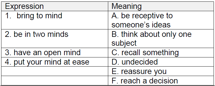 Pick the option that matches the expressions with ‘mind’ correctly.