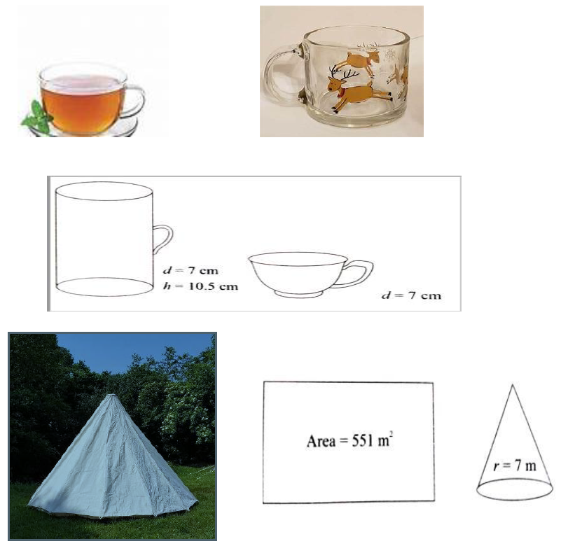 Some students of a school reached for adventure at Sakleshpur. At the camp, the waiters served some students with a welcome drink in a cylindrical glass and some students in a hemispherical cup whose dimensions are shown below.