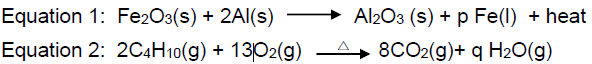 Both equations 1 and 2 are redox reactions, p= 2 and q=4